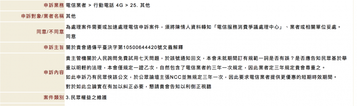試用這東西當初是向行政院消保處爭取來的...不是NCC,更不會是01,樓主你應該把在01寫這些東西的時間拿去向當初那個消費單位陳情才是正確的。 ...(恕刪)