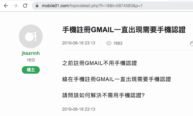 手機註冊GMAIL一直出現需要手機認證怎麼辦