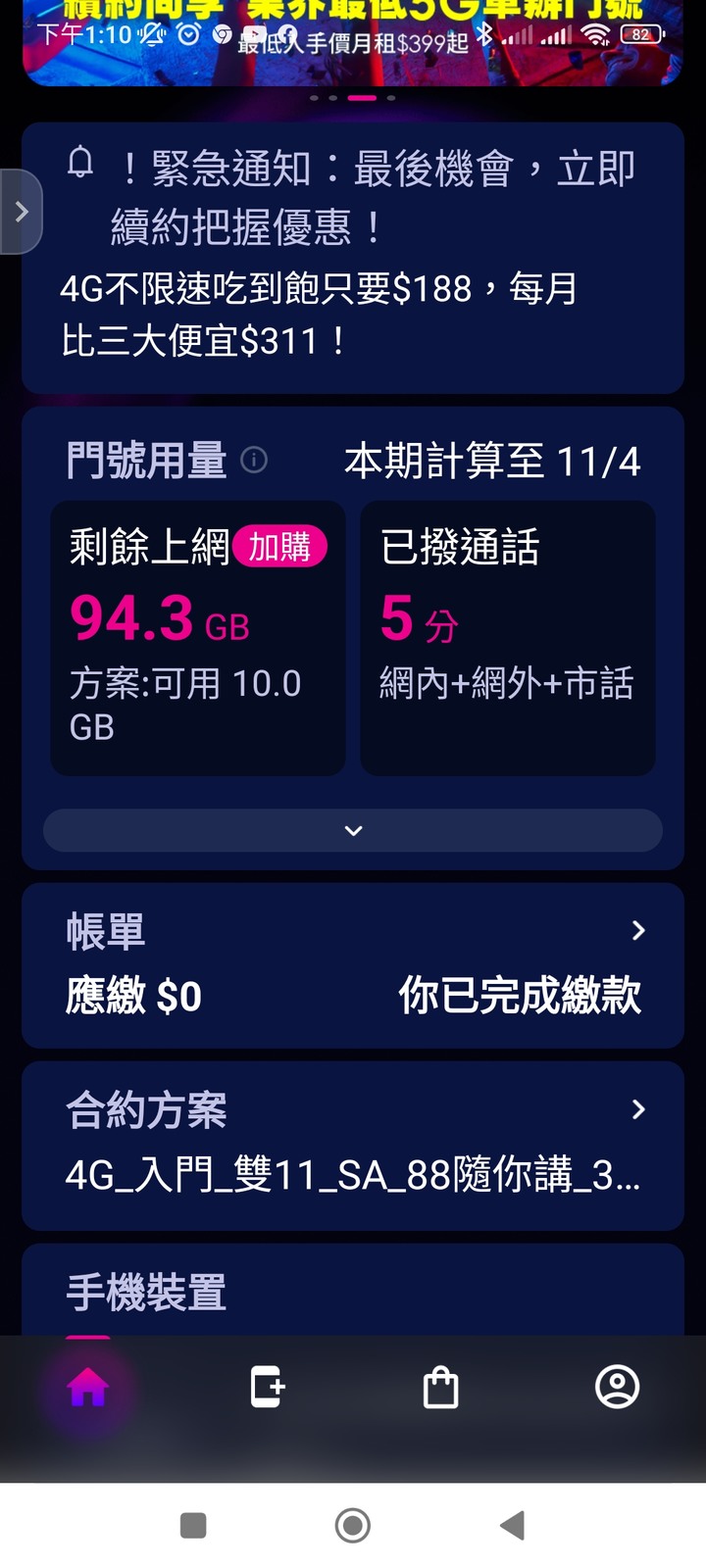 手上也有三個88元,在家都有WIFI,所以也存了一些...想當年這些費率真好辦,不知不覺自己也養一堆門號,給老婆,給小孩,給家中WIFI分享器...台星88*3,台星188*3,亞太11*3,LINE 111*3,211*1