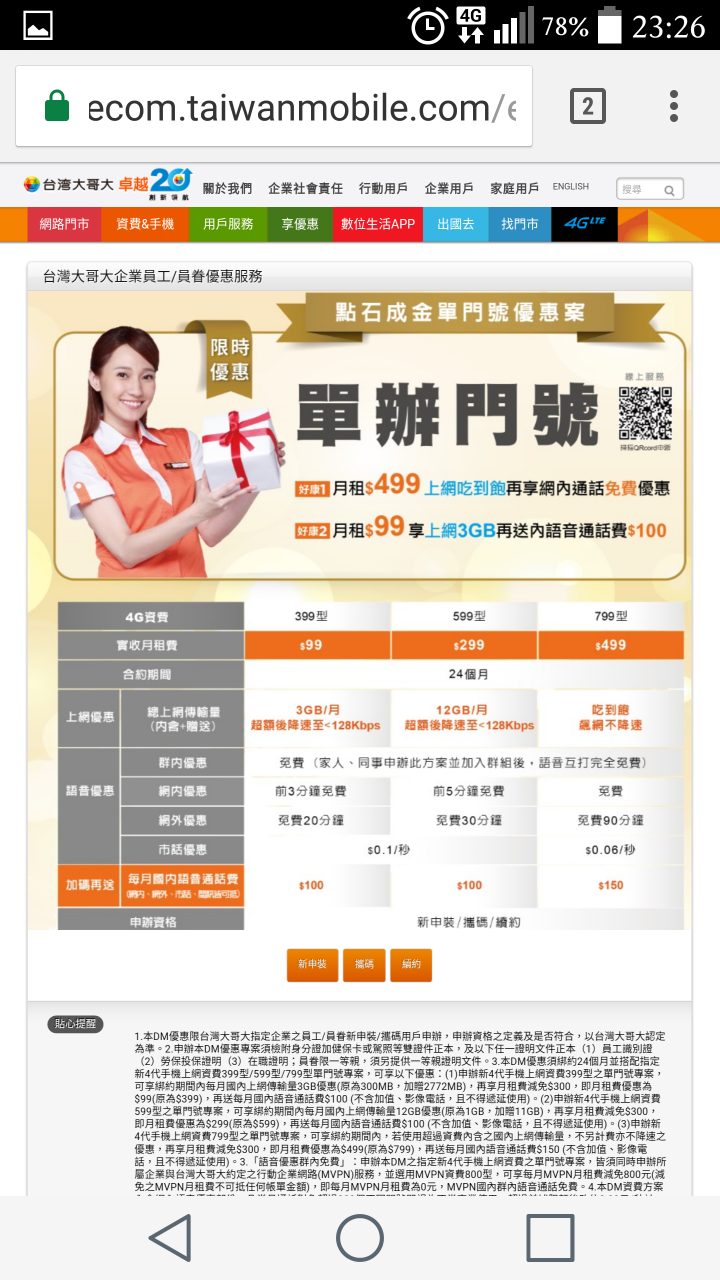 轉載自台哥大網站:2.申辦本DM優惠專案須檢附身分證加健保卡或駕照等雙證件正本,及以下任一證明文件正本(1)員工識別證(2)勞保投保證明(3)在職證明;員眷限一等親及配偶,須另提供一等親/配偶證明文件。