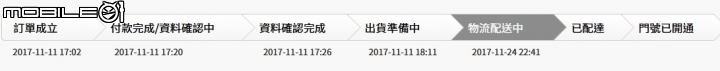 我是11/9提前完成訂購,11/13物流配送中,至今連電話都沒接到同事是11/11當天排隊申購,11/23收到,我不是優先申購的嗎?比當天申購還慢,應該不是台星的錯,是禾頡物流的問題!只好等等等等等等等等等等,等得我假日都不敢出遠門.............