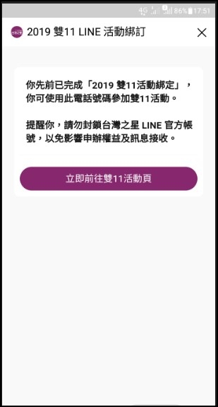 國標 wrote:綁完,應該這樣的畫面...(恕刪) 我有雙門號,先用不是line的門號綁定,後來怕收不到line通知,想說用line的門號再綁定一次,結果出現我line帳號已用我另一個非line的門號綁定,不能再綁,不知道會不會有問題?