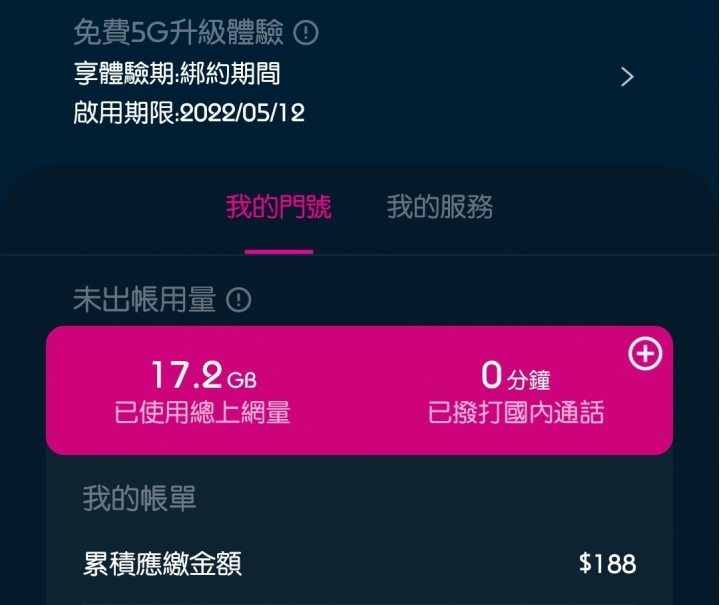 RTCG123 wrote:+0 88 申請體驗5G後使用4G手機 目前前10GB變成不限速 這真是太讚了!88用戶即使沒換5G手機也都值得升級體驗5Gchincheng wrote:今天發現我的體驗按鈕已不見了, 無法生升級了, nentendo wrote:我的+0特案88資費的5G體驗也不見了 在5G基地台沒幾座的情況下升級5G最大好處是讓原本前10GB限速21Mbps變成不限速尤其對88用戶來說,反正到量後本來就是限速10Mbps所以升級體驗5G看來是有利的 (即使沒有5G手機)不像188用戶還會顧慮10/31之後會不會熱點到量後限速10Mbps該不會是台星想調整88用戶的升級體驗規則?