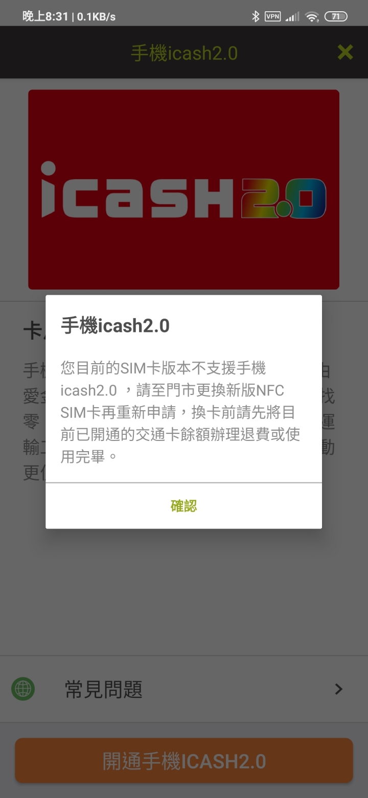 今天更新支援Android 10的friday錢包,發現多增加icash2.0的選項,想說又多了個電子支付,結果居然說目前sim不支援,有點傻眼!不知道有人可以新增嗎?