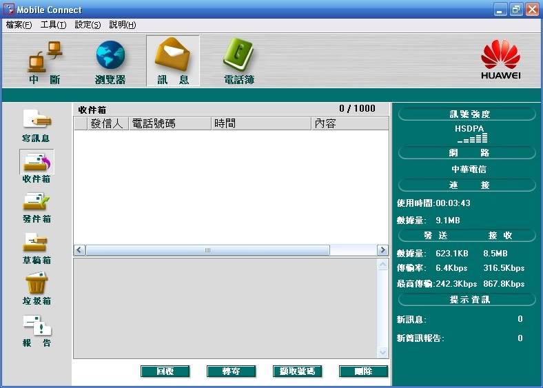 閒聊八卦+ wrote:你回報的區域,都有點...(恕刪) 我來幫他解釋一下好了~基本上,你看到的那個Mobile Connect程式顯示的 "最高傳輸" 中的速度,是指你在此次連線過程中所用到的最高速度,和對方的網站速度也有關係。如果他是去網站用續傳軟體下載個大檔,應該看到的"最高傳輸"速度就不一樣了 ^_^而不是它的極速…真要測速,請到Hinet網站。我之前用中華的3G用了1年半多了,前幾天去買了3.5G的網卡,沒在全速抓檔時,也是 4xx kbps,等到去網站用續傳軟體抓大檔,速度就到 2M了…提供給大家參考~~~