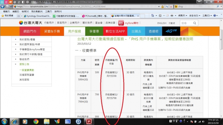 我的門號是指定到台星,昨天跑去台哥大門市問PHS NP的問題,門市人員居然叫我先去台星辦保留門號,再到他們那邊辦NP,聽到這個就聽不下去了,感覺門市也是一整個搞不清楚狀況。我還問他們預付卡裡的儲值金能不能轉買網路,他還說不可以,不過我看官網不是說可以嗎?總覺得這家門市的員工有點混...另外還跑了兩家遠傳問,都說可以直接轉3G預付卡,且儲值金轉網路計量制的流量無期限,在門號有效期限內用到完為止。