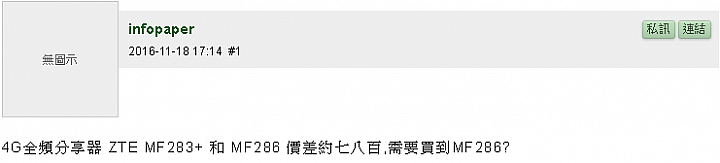 infopaper wrote:4G全頻分享器 ZTE MF283+ 和 MF286 價差約七八百,需要買到MF286?