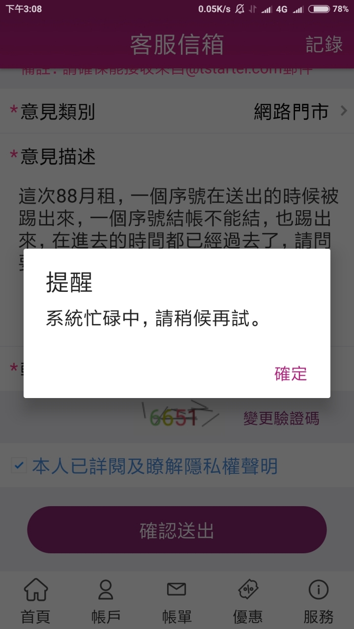 輸入完資料說人太多被踢出? 台灣之星踹共 不然全面抵制 我們好好輸入到底哪裡得罪你們被踼出來 今天不是我們沒序號 不是我們沒照時間 上來 是被你們系統踢出來既然會踼出來 那就大家一定排隊嘛 給什麼序號幹嘛 只會讓人更火大然後時間就結束了 是怎樣? 不給方法處理善後 以後我們家所有台灣之星門號全部退租