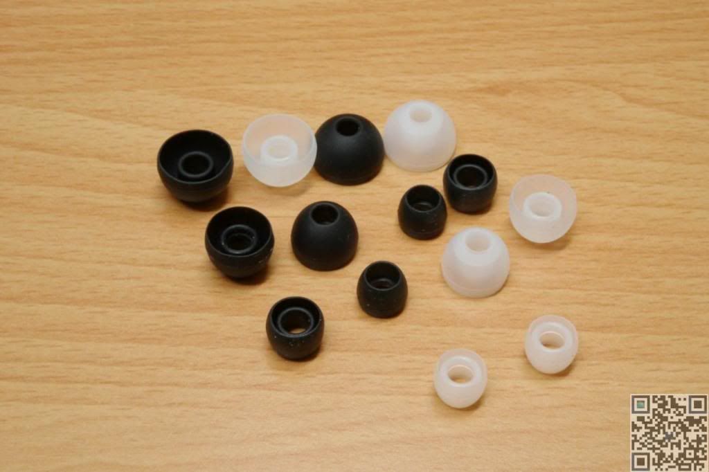 包含已裝上的耳塞,白色加上黑色共 8 組耳塞,每種大小都有黑白色