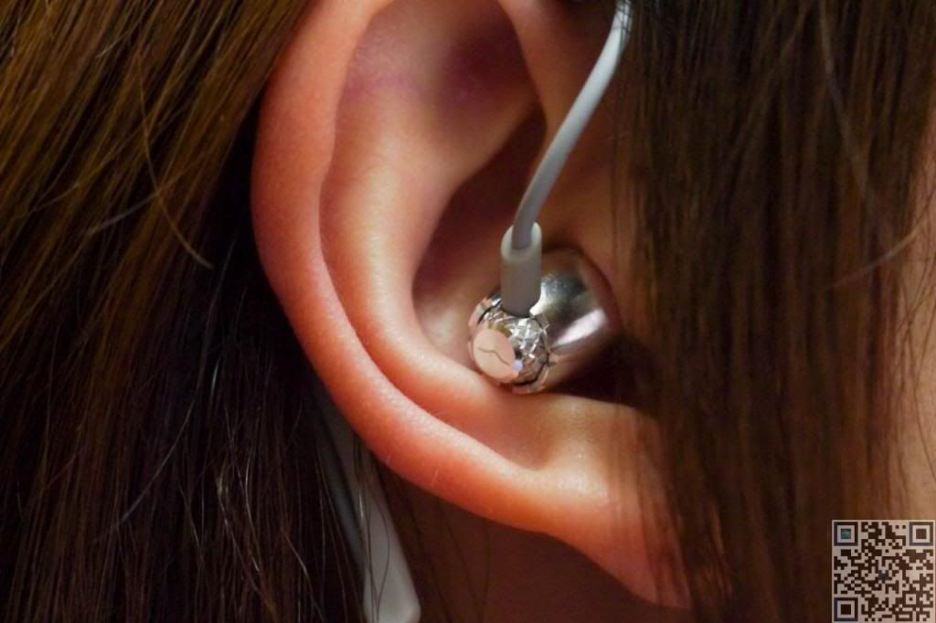 試戴照片,V-MODA Remix Remote 雖然左右都有標示 L、R,但是在配戴上完全沒有左右的問題。