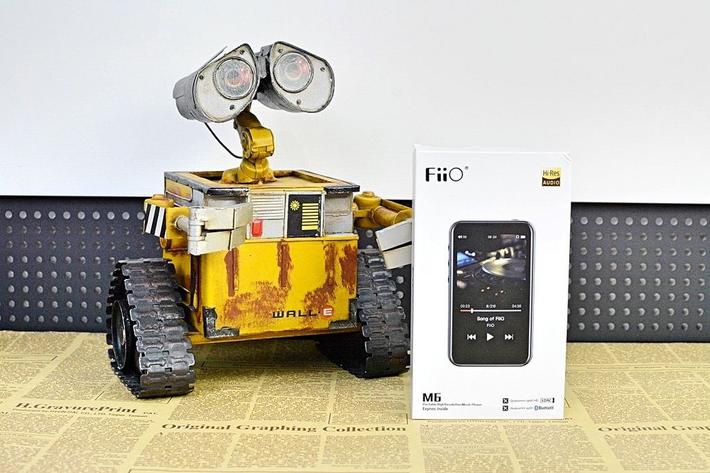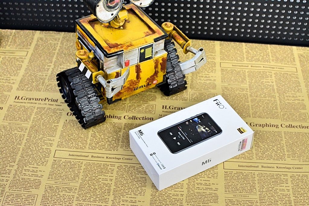 FiiO M6外包裝盒,一如FiiO的產品的風格,白紙盒加上黑色產品圖,簡單寫實的風格。