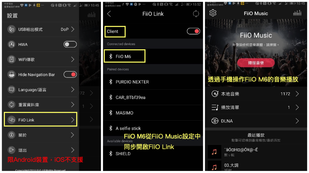 如果你使用Android手機,安裝FiiO Music APP後,就可以透過FiiO獨家的FiiO Link功能,同步操作FiiO M6內的音樂檔案。