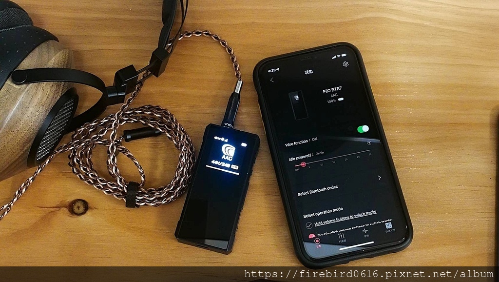 因為標配的線是4.4平衡端子,竟然推出來表現還不錯呢!和FiiO M15比起來,會高覺高頻和低頻的延伸有點硬推上去,會比較不穩定的飄移感。不過整體表現,BTR7推得到300Ω耳機可以推得動,已經讓我感覺十分驚豔。