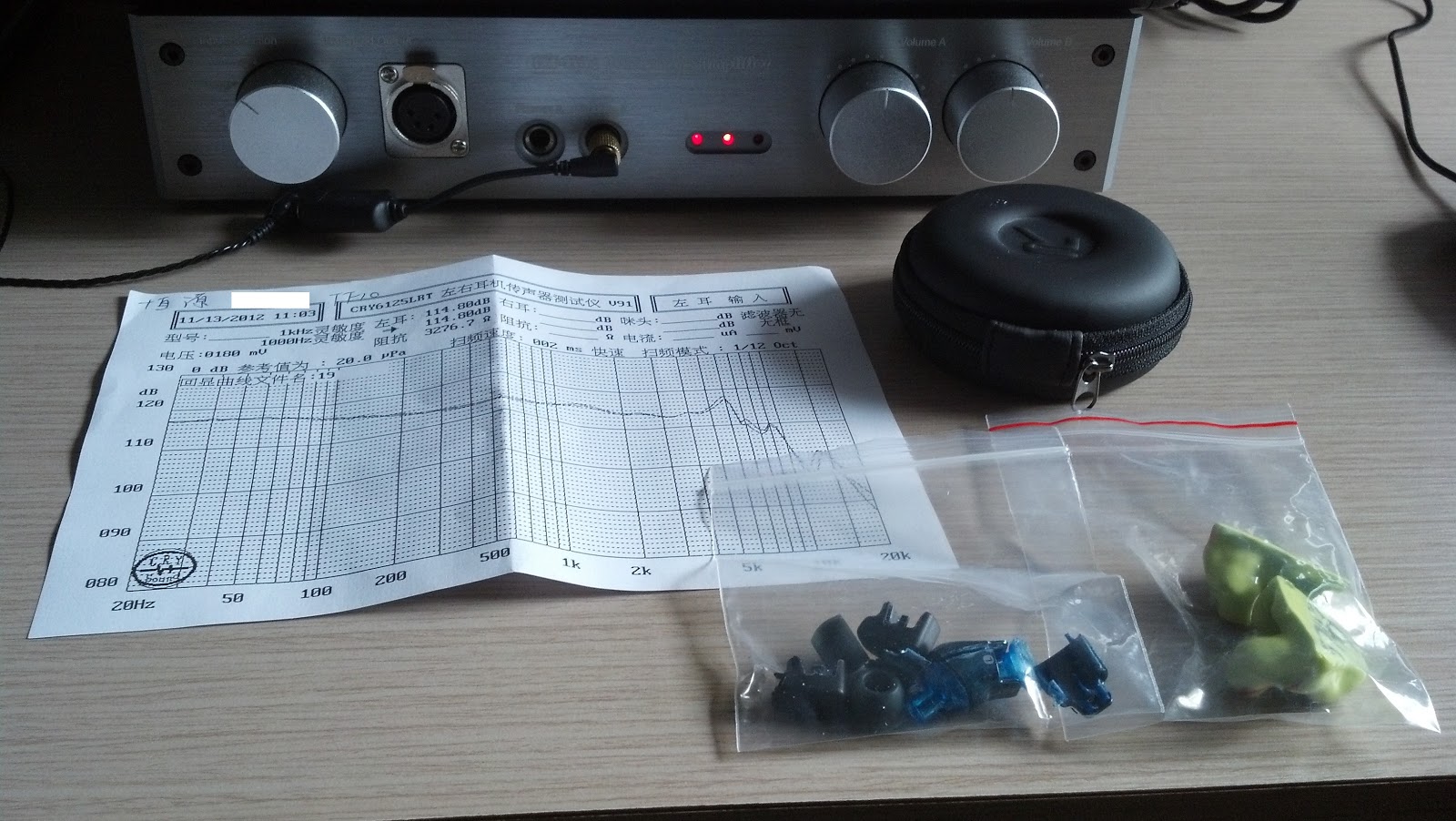 裡面有改模後左右兩邊的掃頻圖, TF10的舊居, 放著TF10的圓型盒子 (不是Beats的, 別誤會) , 還有我的耳模 (當初有要求要拿回耳模) , 至於單據我早就拿走了。