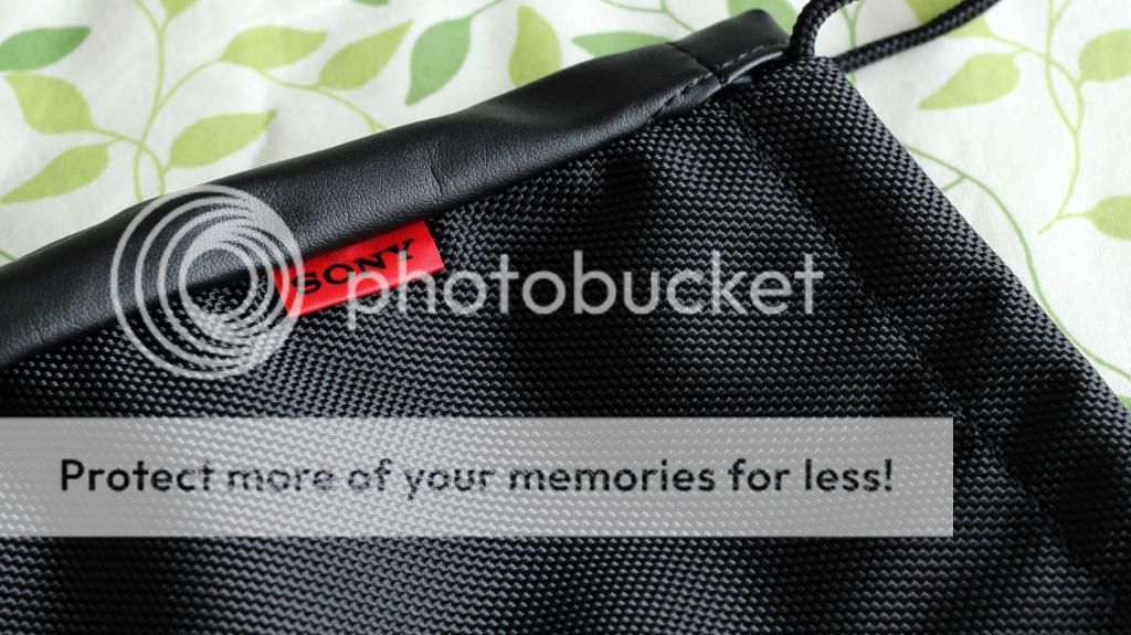 近拍耳機袋一張,兩側是人工皮質的料而袋身是網紋質感,再附加個SONY的Logo給你。