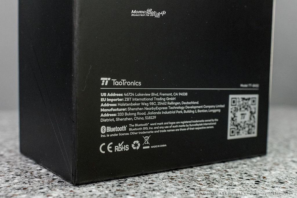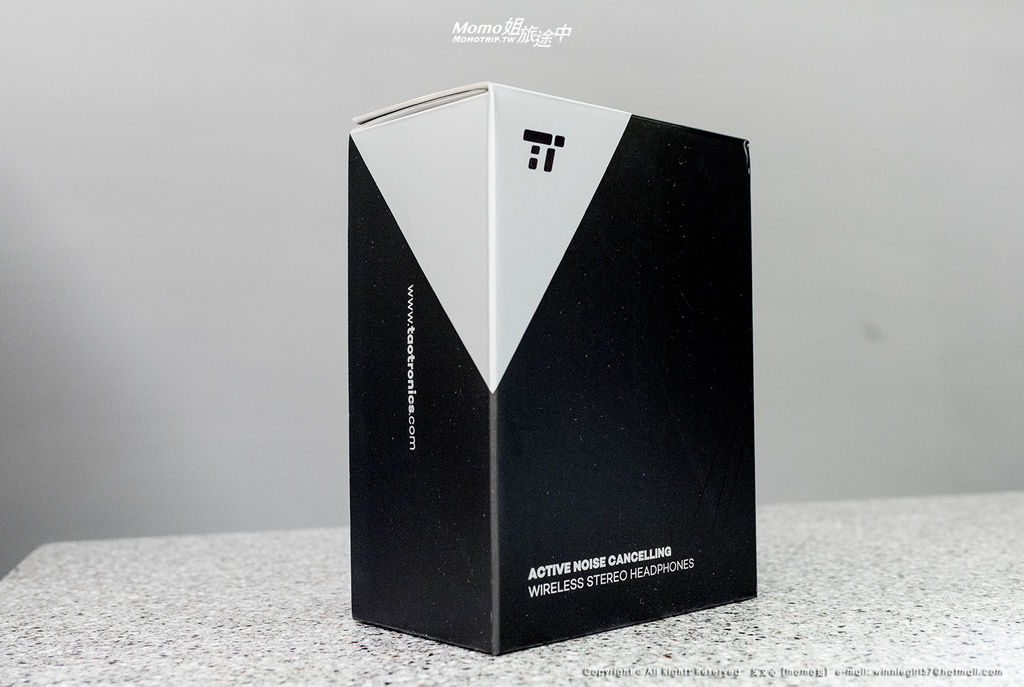 Taotronics TT-BH22 降噪耳機的外盒是相當精緻的,厚板紙盒的黑灰設計,俐落的區塊表現。
