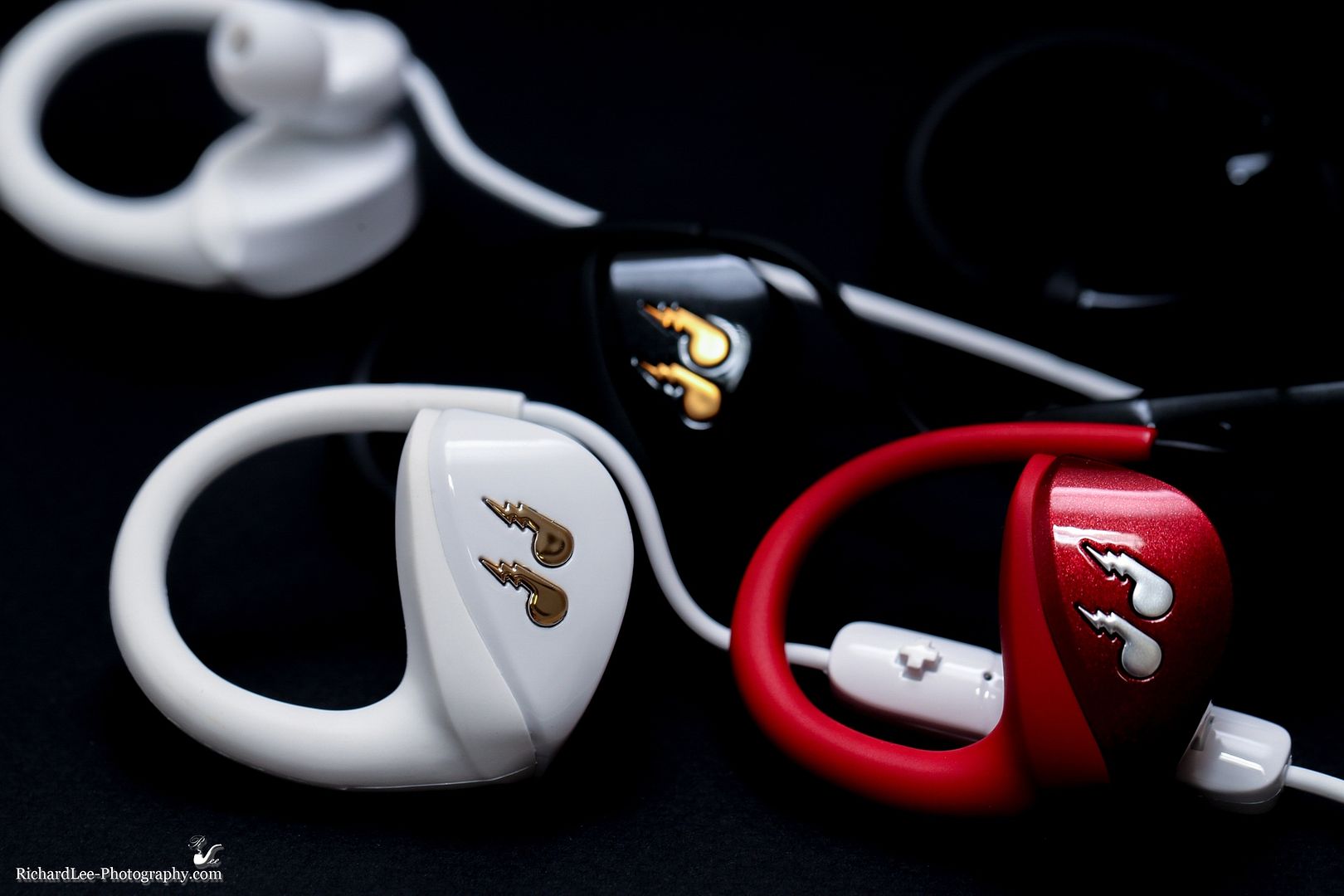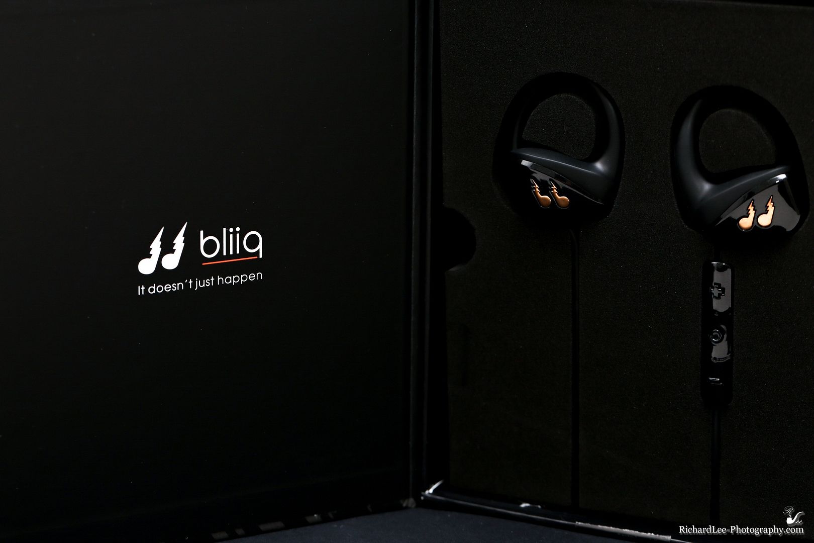 品牌的商標很明顯,包裝盒、收納盒、耳機本體、USB、長度調整器、等,都可以看到那個像是音符又像閃電又可能是蜂鳥的翅膀或蝌蚪的商標。但這個商標應該是bliiq的商標,而耳機的品牌蜂鳥似乎沒有特別放在這個產品上。 左右的標示蠻明顯的,很黑暗的時候可以摸摸看哪一邊有控制器,那邊就是左邊。因為耳機的設計方式,戴錯了也戴不上。
