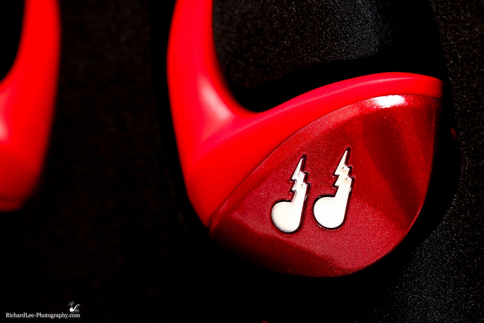所幸呢,白色跟紅色的透明內蓋貼紙沒有被理查也切斷了,下面是黑色的耳機特寫