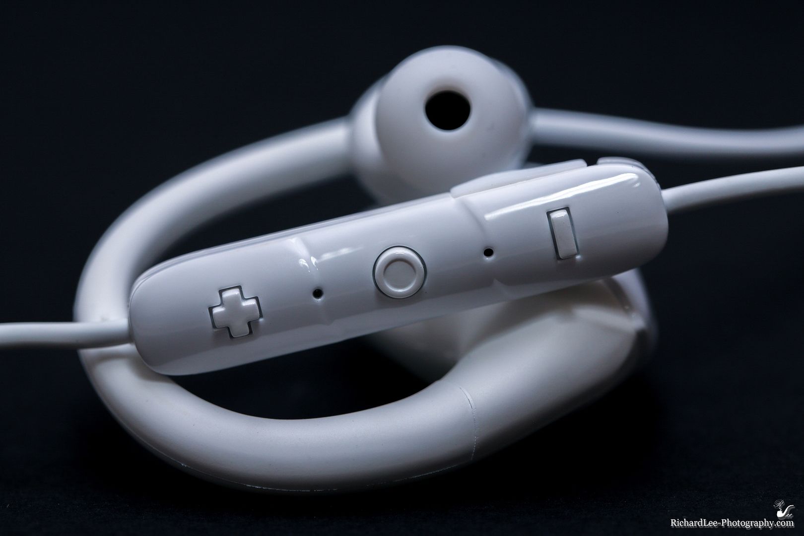 耳機的操作很簡單,由於相較有線耳機,這蜂鳥藍牙的線相對短,操作的按鈕靠近在左邊的耳垂下方,很容易找到。按鈕只有三個,形狀都不一樣,方位很固定,所以相當好上手。 大小聲用手機來操作也可以,所以比較常用的反而是中間那個按鈕:開機、關機、開始、停止、監聽(理查不喜歡用這個字眼,等一下再說)等功能都可以使用中間按鈕來完成。