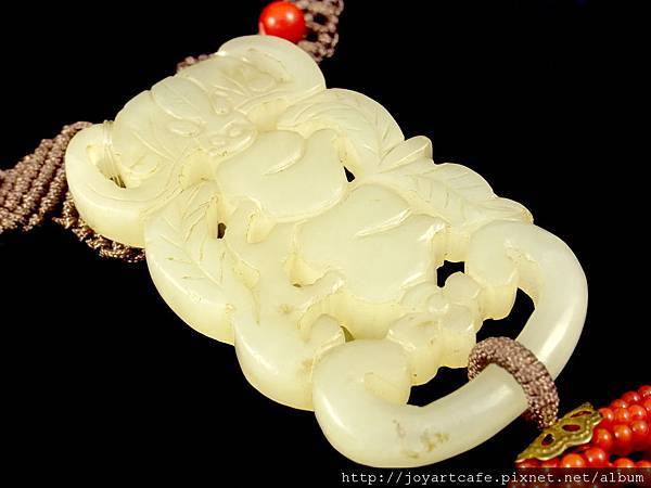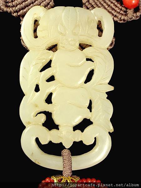 本件作品主體為:明代和闐白玉福壽雙全帶穿