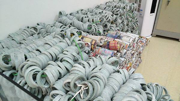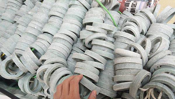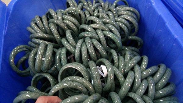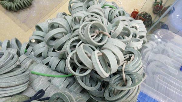 看看旁邊,推積如山的手鐲胚。我看到後面是加工廠,自己在當口(店鋪)後面加工手鐲。