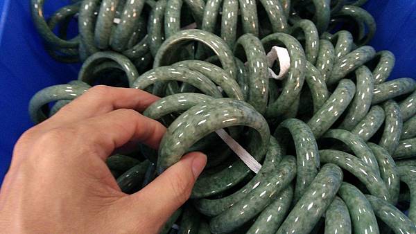 這一手50隻報價180元人民幣一隻,看到這一手手鐲,我彷佛似曾相見,好像是前幾天拿的長石手鐲一般,至此我恍然大悟。原來市面上的低價手鐲,都是俄料來的!