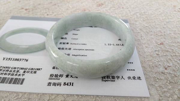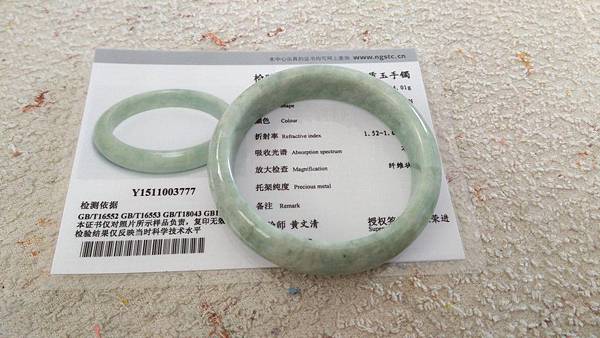 圖片:之前購買的手鐲,經檢驗後為長石手鐲。這次看到俄料,才發現原來都是俄羅斯翡翠!
