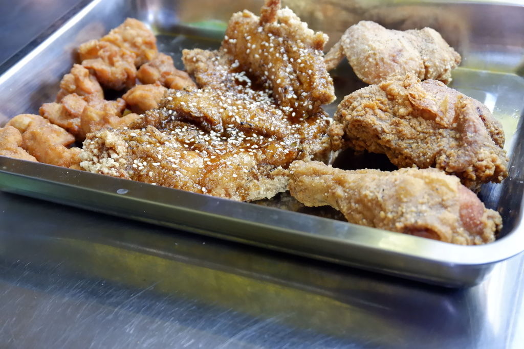 雞翅(右上),腿排(右中),棒腿(右下)的口味吃起來好像都滿相似,酒香醃製過的雞翅等讓人吃的見比格台喀雞排基隆店的高超專業手藝!