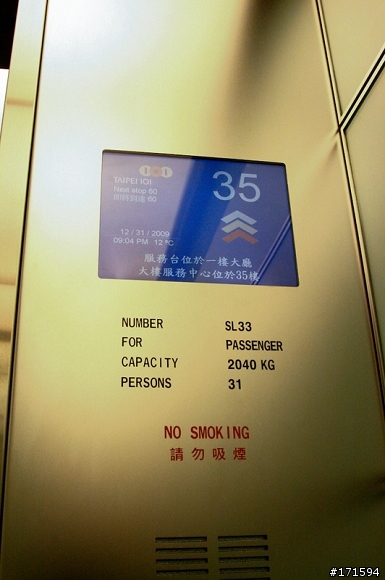 然後 就到大廳的二樓 就會有人接待先到櫃台的地方報到,鳥地方餐廳的服務接待人員穿得很像參加party的服裝(低胸白色洋裝),一眼就看出來欣葉跟鳥地方的的服務人員,由於我們是定九點因此需要在二樓的地方等到九點,服務人員才會唱名帶我們去搭電梯直奔85 樓。