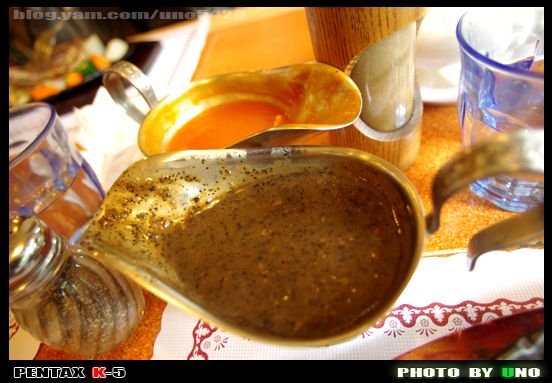 磨菇醬跟黑胡椒醬會隨餐附上 看自己的口味淋上