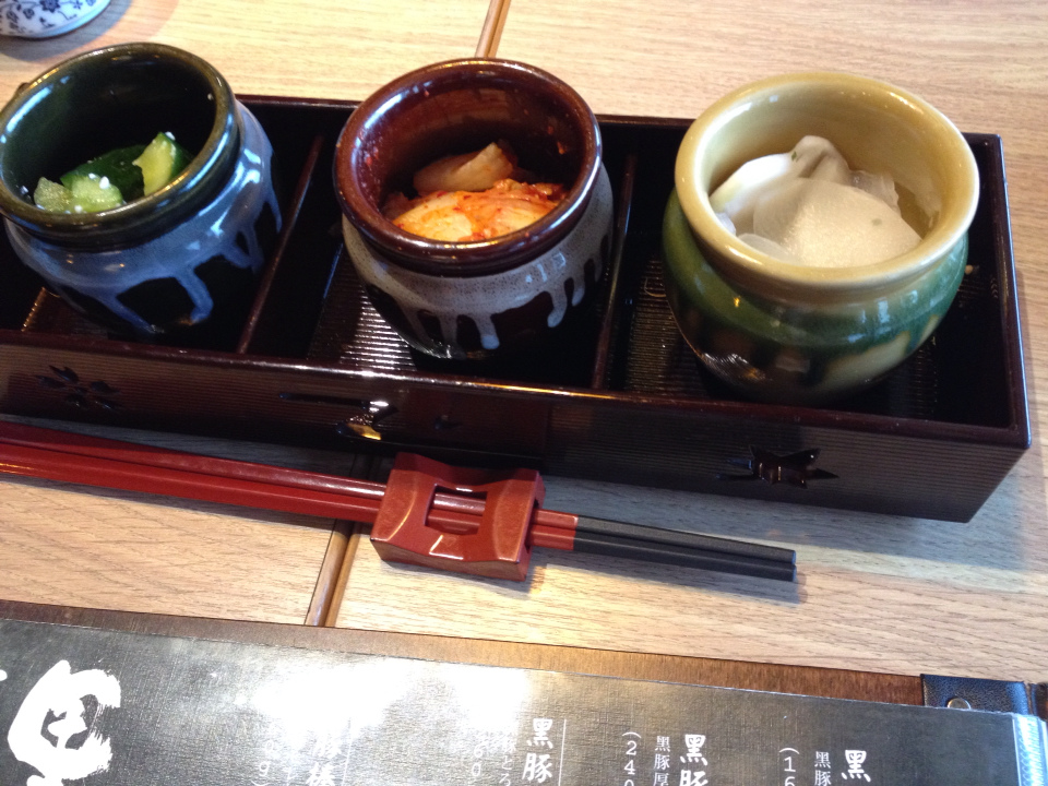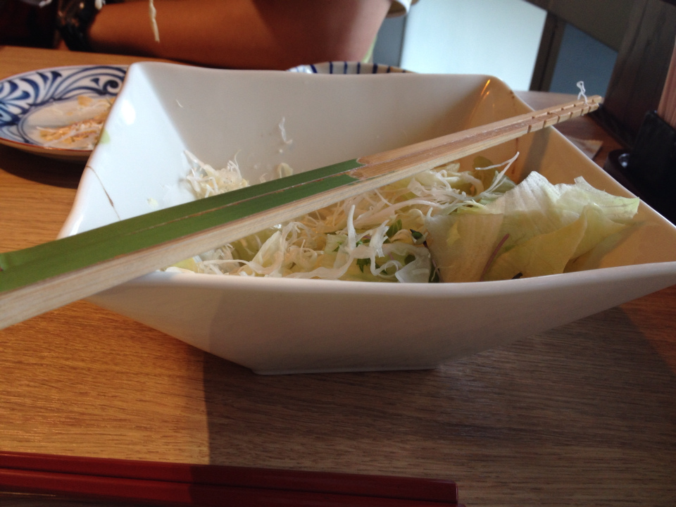 跟其他間日式豬排店一樣,靜岡勝政的高麗菜絲、跟後來隨餐附上的味增湯無限續;但桌上小菜用完後必須加點,南港店的店員都會頻繁的到桌邊查看是否需要補生菜與茶水。
