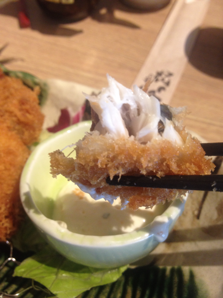 有一次我衝了高價位的新菜:酥炸竹筴魚腰內豬排 套餐560元。沒辦法,這是我當天第一餐,腸胃還沒有醒、其實沒有吃豬排的fu,一吃卻驚為天人! 魚肉好綿說,有很豐富的海味! 竹筴魚也是超大一塊地,里肌豬排在他旁邊看起來好謙虛,有魚又有肉,堪稱一盤山珍海味了。 竹筴魚是限量的菜色,我點完之後廚房就只剩下三份了@@