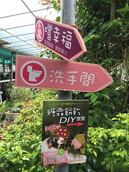 一旁有去洗手間和糖霜餅乾DIY教室的指標