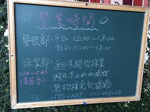 草莓季12月到5月,到莓圃用餐記得要先預約,採草莓則無法預約,建議假日10:30就要先排隊,因為11:00開放進場,大約11:30以前草莓就會被採光,