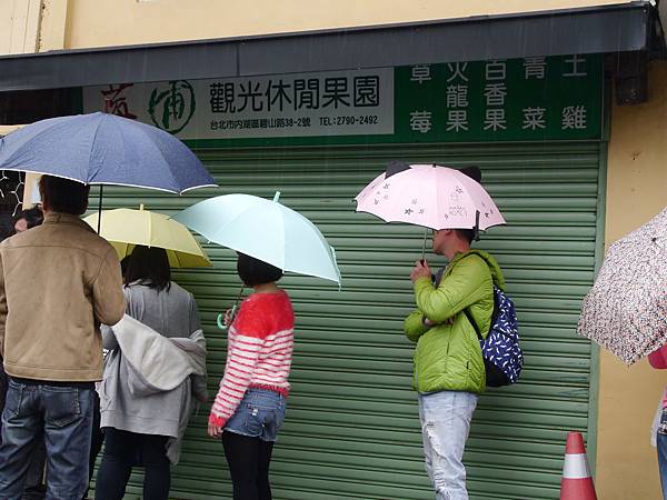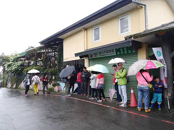 莓圃雖然是假日11點開始營業,但是10點就開始有人在排隊,這是12/27 早上10:40下毛毛雨的排隊盛況,