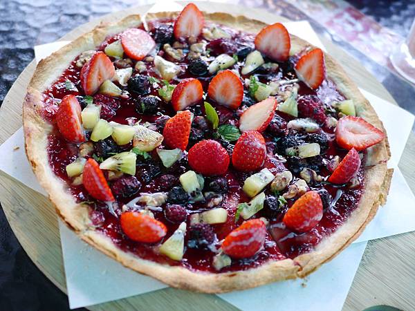 看看這美莓繽紛披薩,看了就好賞心悅目,發覺這裡好多外國人來用餐,應該是還蠻有名的草莓園