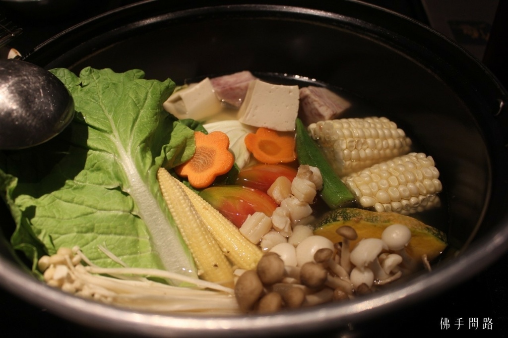 火鍋的湯底選用老母雞、多種時蔬、干貝熬煮而成,湯底自然鮮甜