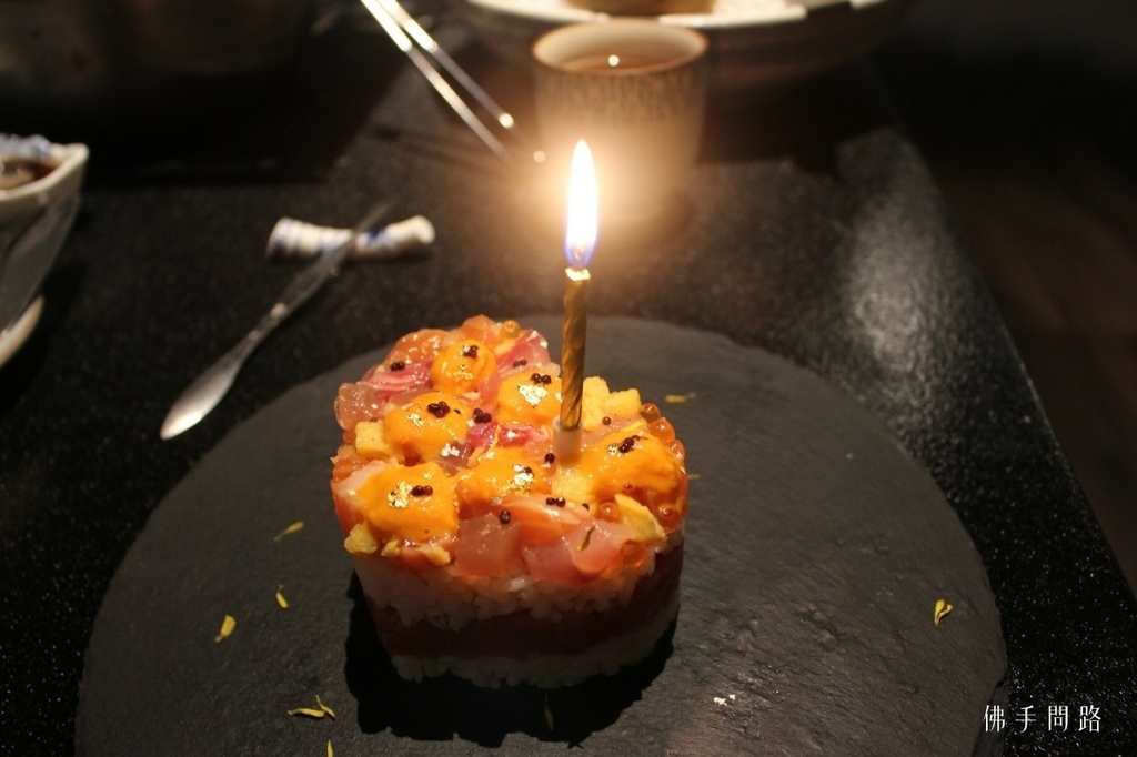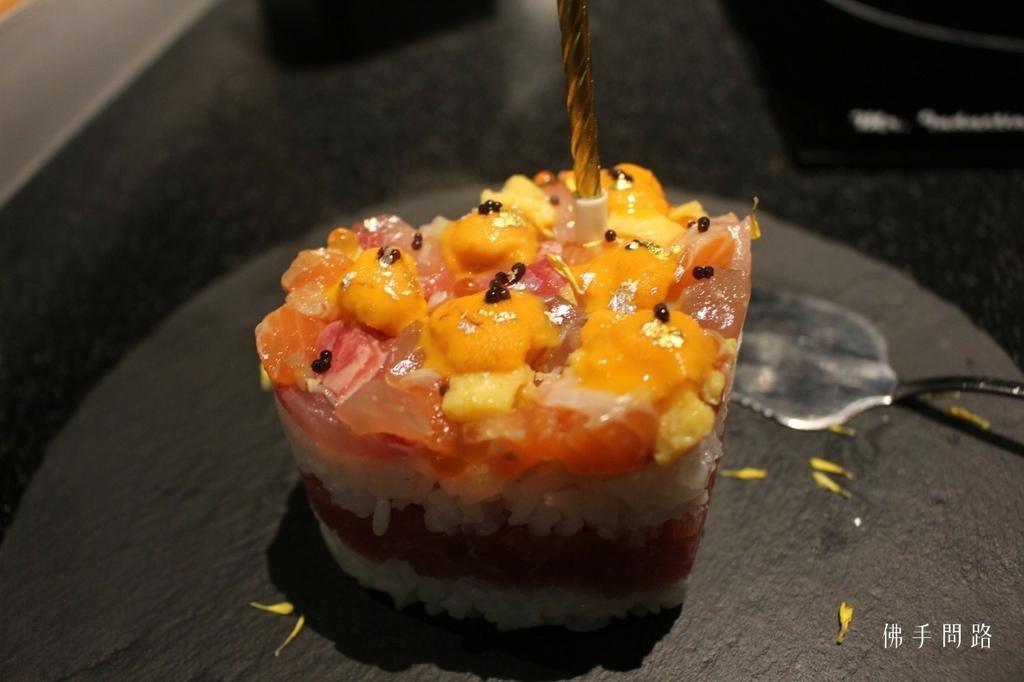 刺海膽杯子蛋糕$1580(4吋),海膽超級鮮甜讓佛手印象深刻,生魚片杯子蛋糕,讓不愛吃甜的朋友在紀念日多了個選擇(需提前預訂)