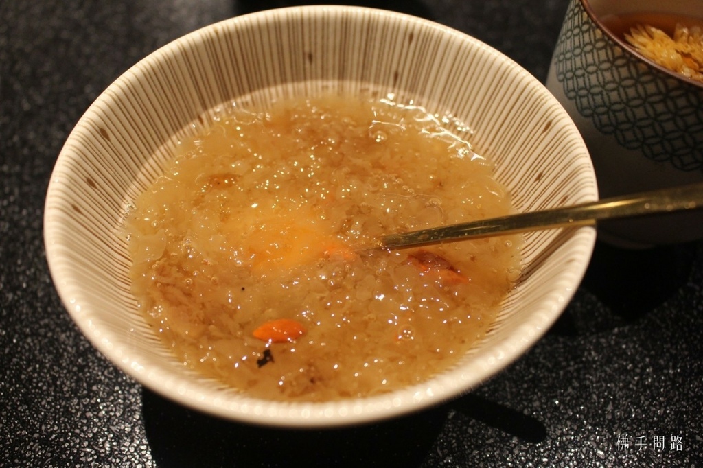 最後的甜點 桃膠、芋泥冰,佛手是吃桃膠,女生的美容聖品