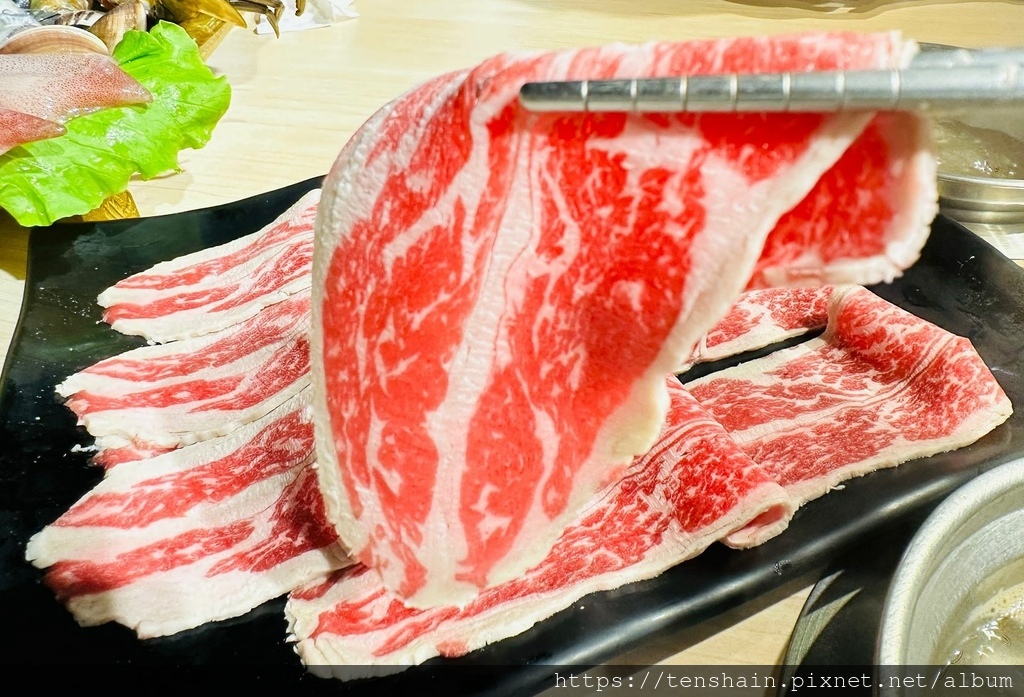 "安格斯牛小排鍋"也不遑多讓,漂亮的雪花,一看就令人垂涎三尺。