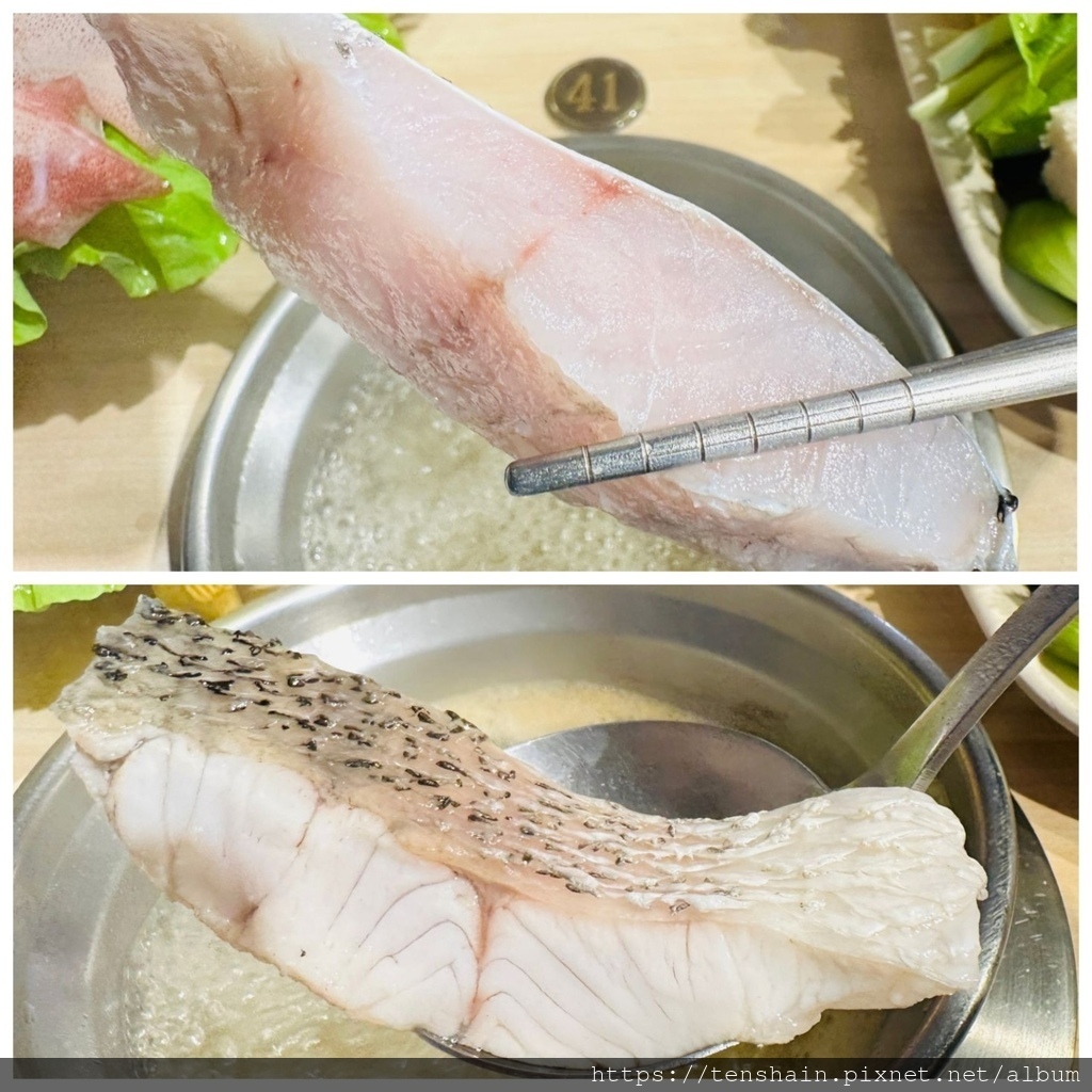 我們先從氣味清淡的魚開始吃起,鮮鱸魚的魚肉夠厚夠新鮮,煮熟之後還是非常完整,不會支離破碎。吃起來鮮甜多汁,更難得的是沒有土腥味,魚皮也保持該有的彈性,品質無庸置疑。