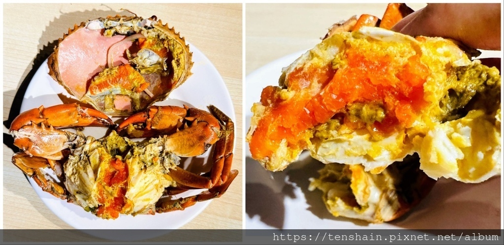 我的習慣是把最好吃的東西放在最後吃,這隻螃蟹滿滿的紅艷蟹膏超誇張!現在是六月,怎麼會有這麼飽滿的螃蟹?