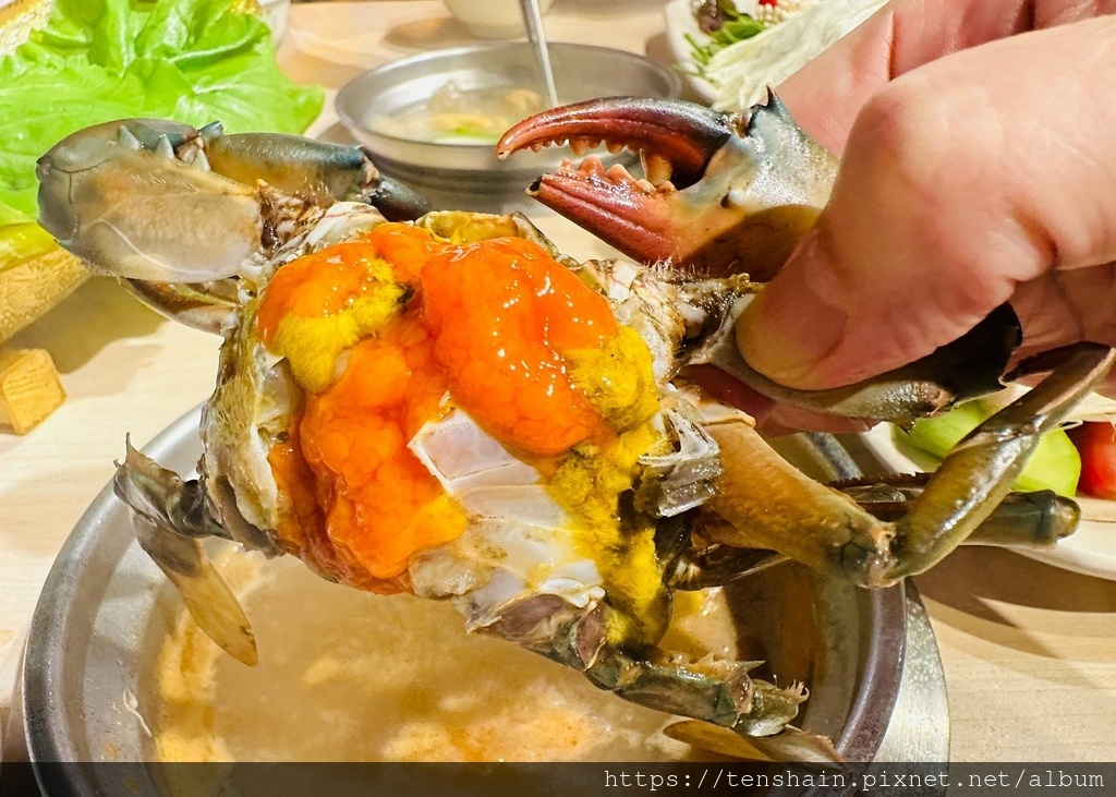「涮了吧」的螃蟹,煮熟之後,蟹肉還是非常飽滿,與隔膜緊緊相連。一口咬下,鮮美的湯汁和蟹肉會回饋給你滿滿的海味,超級好吃!我覺得光是這隻螃蟹,就值得讓我再度專程驅車前來品嚐,因為吃過就會令人懷念啊!