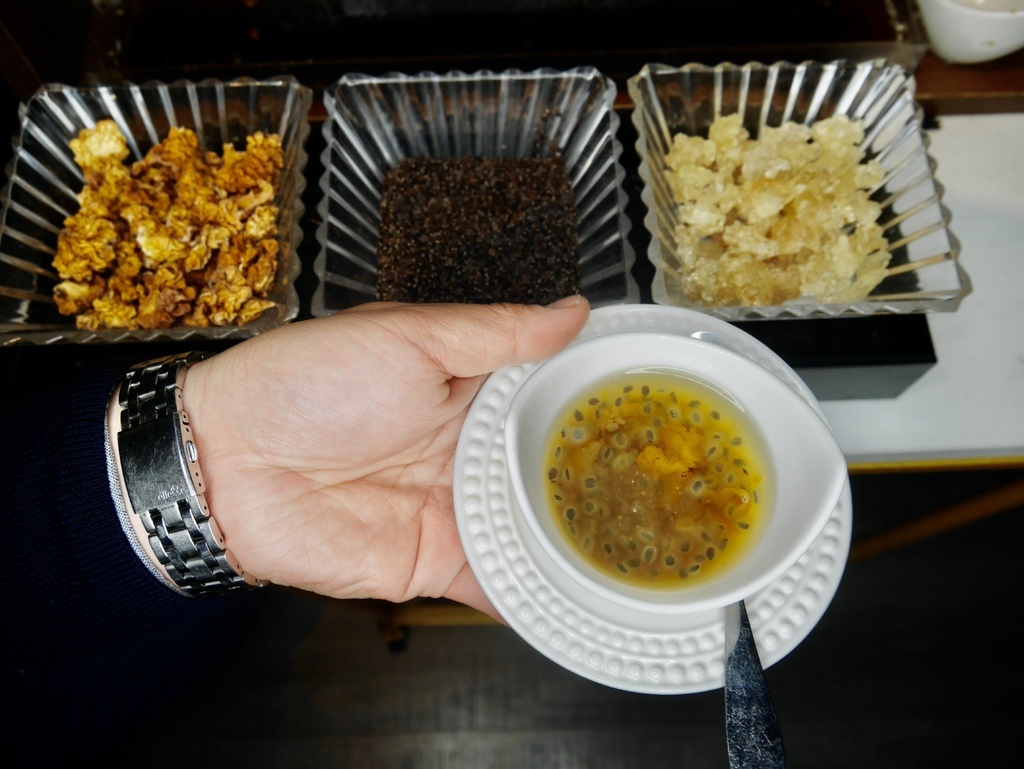 其中由雪燕、金耳、山粉圓和桂圓組合而成的甜湯,