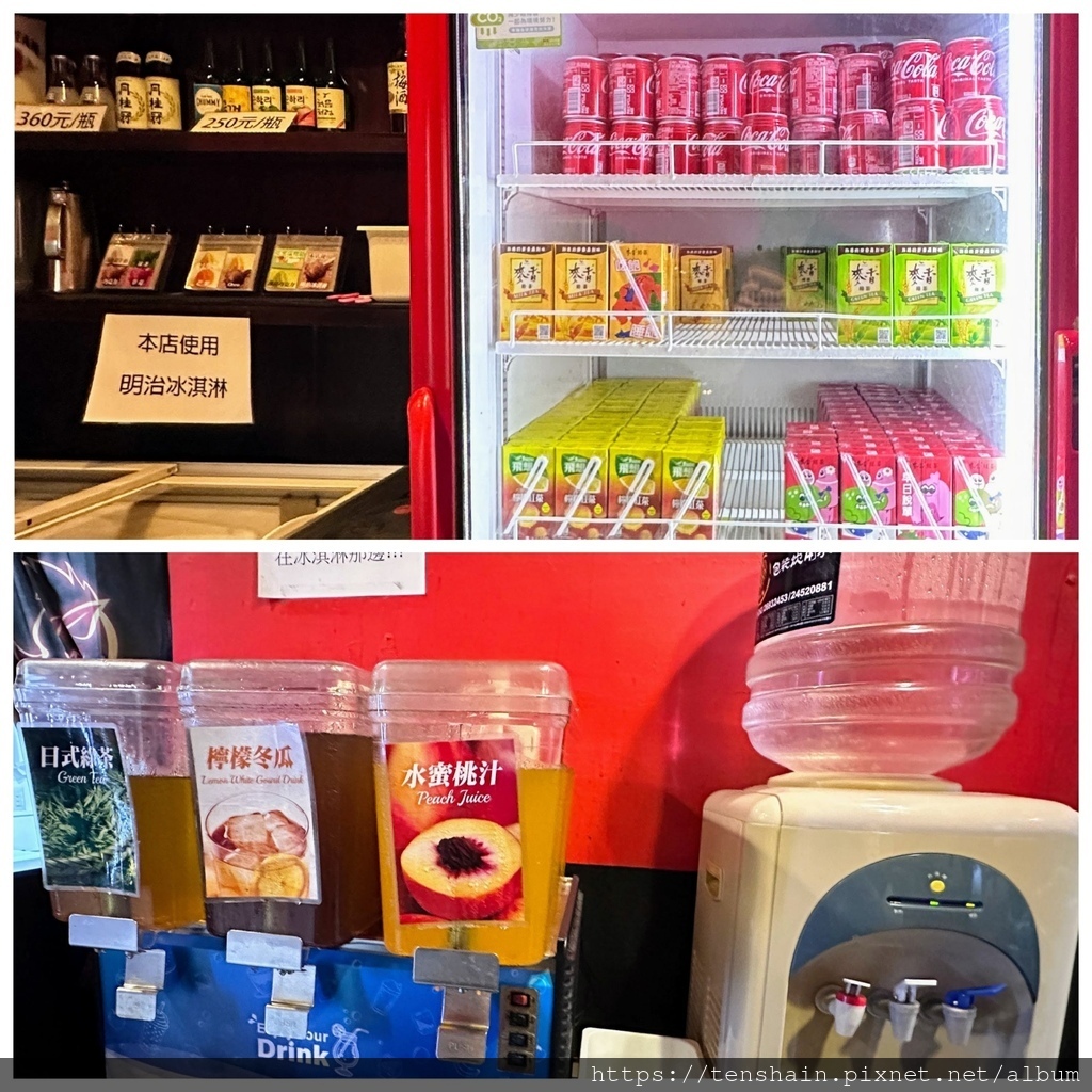 。飲料的種類也不少:罐裝的可口可樂、鋁箔包的"麥香紅茶、麥香綠茶、麥香奶茶、檸檬紅茶";也有杯裝的日式綠茶、檸檬冬瓜、水蜜桃汁。