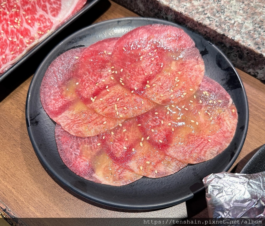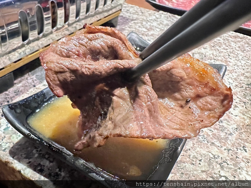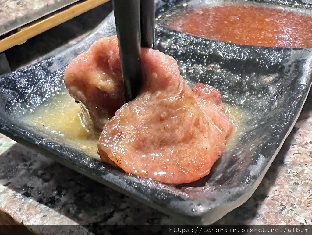 "醬燒牛舌"是吃燒肉不可錯過的美食,醬汁相當清淡,不會蓋過牛舌的原味,不會過鹹才吃得多,我喜歡。