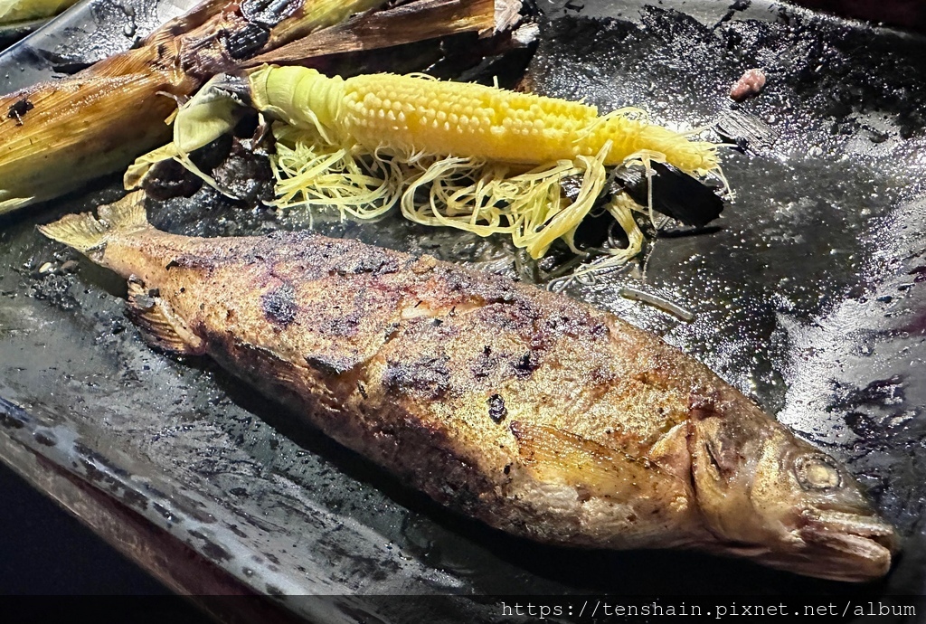 阿根廷活凍天使紅蝦,肉質細緻軟嫩,蝦頭富含濃郁蝦膏,連殼一起烤最適合,這就是為何店長沒有幫我們剝殼的原因。用炭火烤到蝦殼發出濃郁香氣就可以了,藉助熱火的收水功能,天使紅蝦肉質就不會軟爛,吃起來 Q 彈鮮美,清甜不膩。