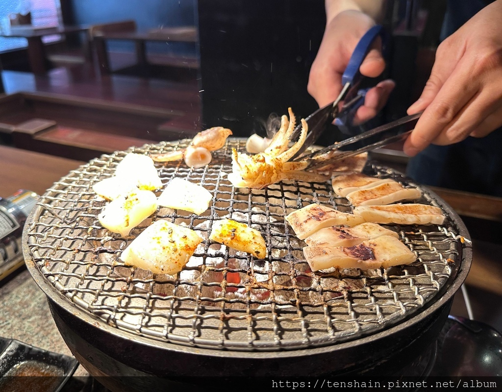高蛋白、低脂肪、低熱量、富含DHA營養的厚實魷魚,燒烤後芳香四溢,咬起來彈性十足,比起軟嫩的花枝一點都不遜色,兩者我都很喜歡。