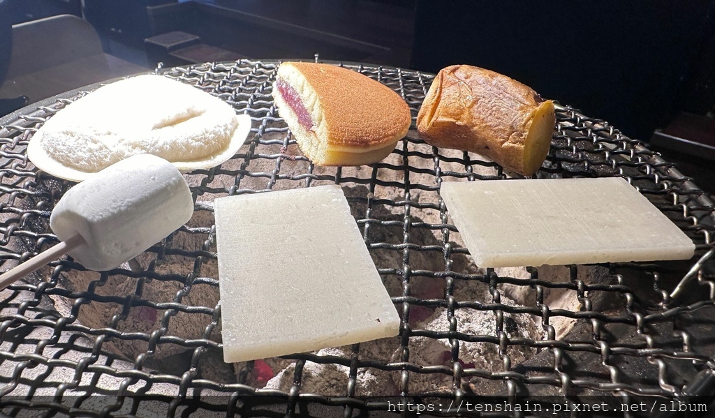 冰淇淋堡、日式麻糬、冰心地瓜、鬆軟棉花糖,再加一個銅鑼燒,在烤爐上發出誘人的甜香。