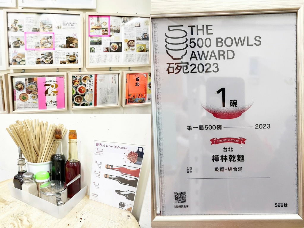 樺林乾麵2023獲得500碗的認證,店內有超多日本媒體雜誌的報導,許多旅遊書都推薦樺林乾麵為台北必吃美食